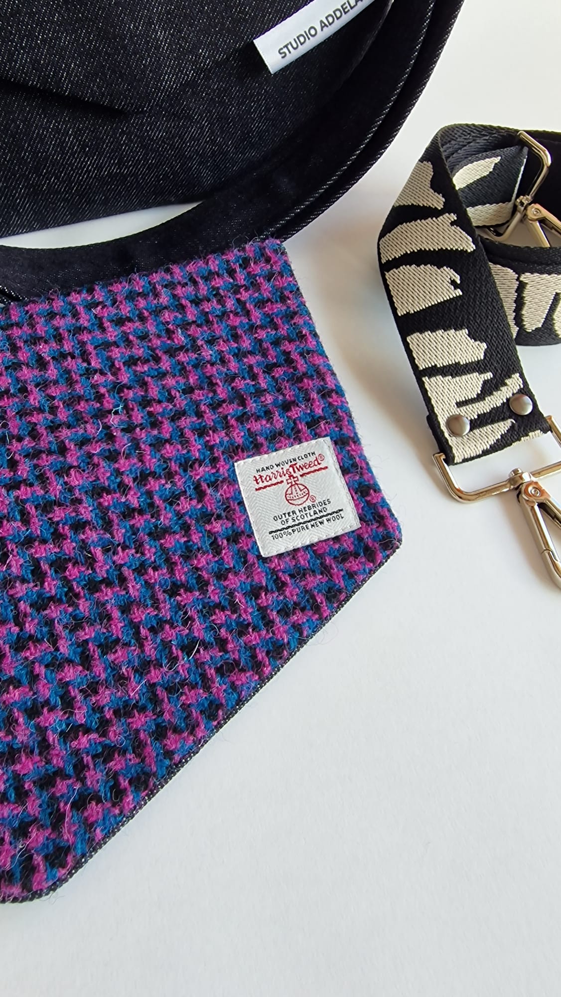 Elevate your everyday style with our premium crossbody bag, crafted in the UK from sustainable iconic denim and British heritage tweeds.